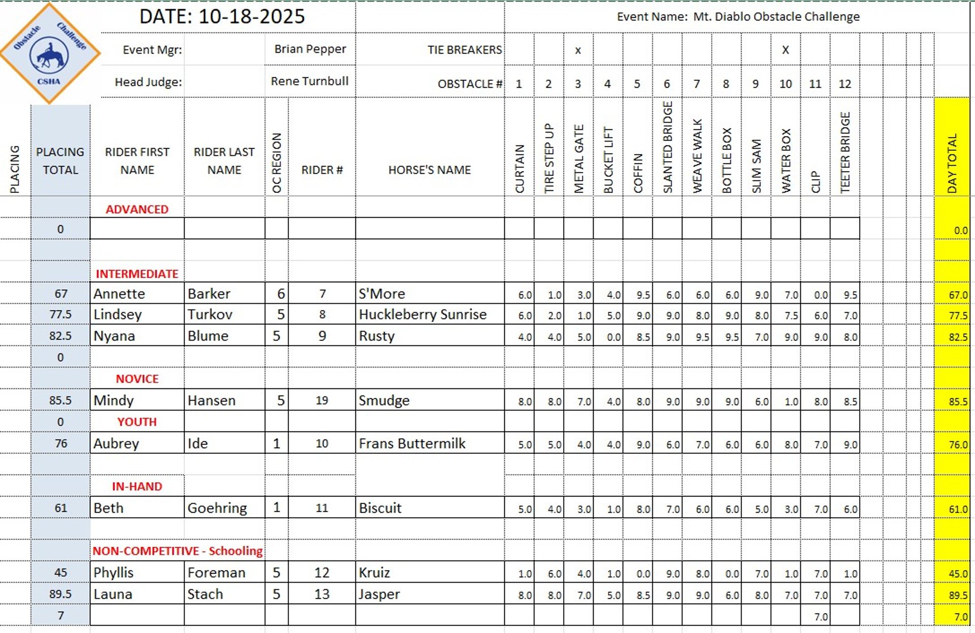 2025 Obstacle Challenge Score Sheet