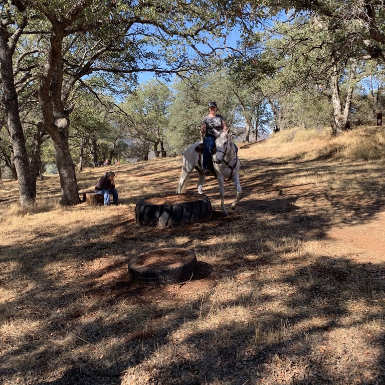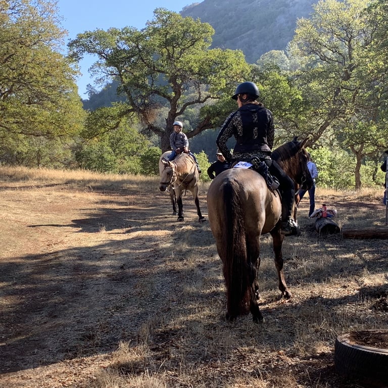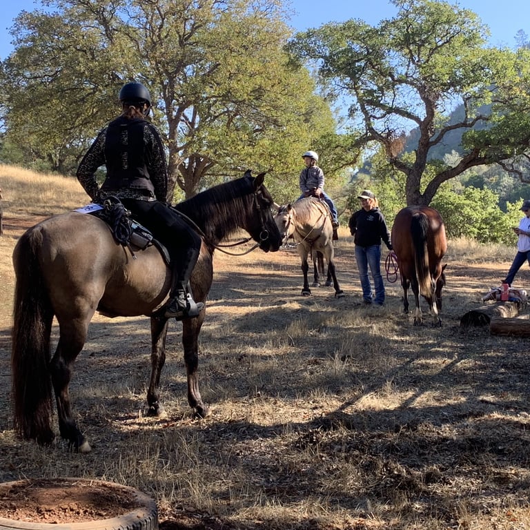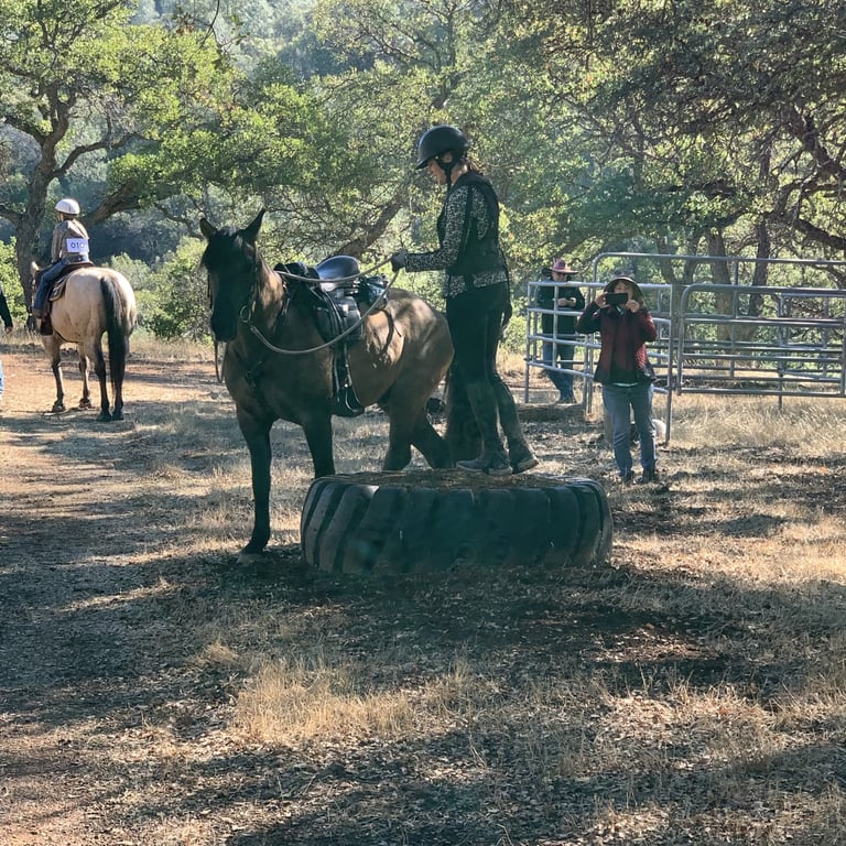 We challenged our horses and ourselves over obstacles under a canopy of stately oak trees on beautiful Mt. Diablo in historic Cardinet Oaks located on the Concord Mt. Diablo Trail Ride Association's property.
